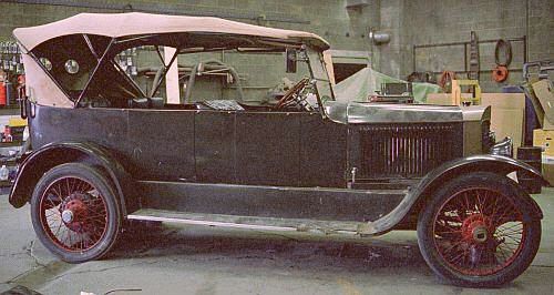 Right Side View On January 1, 1998 the Stanley was picked up from the heated garage of its former owner Marvin Klair. The car was brought to Wilhelm’s Service Center where it would undergo an evaluation and general review. Shown here, the car sits on the twin-post hydraulic truck lift actually designed for lifting of vehicles like the Stanley for maintenance purposes. Stanley Motor Carriage Company Serial Number 18137 was manufactured in 1918. With a new body style the car carried a new model designation ~ Model 735. Five variations of the Model 735 were available; the Model 735 which was a chassis only vehicle ($3,369.60); the Model 735A as a 4-passenger touring car ($3,863.90); the Model 735B as a 7-passenger touring car ($3,889.93); the Model 735C as a 4-passenger coupe ($5,449.90); and finally the Model 735D as a 5-passenger sedan ($5,449.90). All prices included the war tax that was in effect during that era and all models provided a 130-inch wheelbase and 56-inch tread. Standard equipment included Firestone 34” x 4” Light Demountable Rims with Firestone straight groove, black tread, 35” x 4-1/2” straight-side cord tires. The wooden spoke wheels were of high quality ash. For an additional $100 for black or $110 for white Houk “Quick Change” Wire Wheels manufactured by the Wire Wheel Corporation of America in Buffalo, New York could be supplied. |