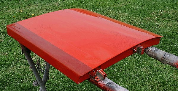 While the car's body was left alone for several months the painting of other parts of the car took place. By allowing the car's body to "rest" for several months it insured that all the cross-linking polymer structure of the Imron paint occurred before subsequent activities were started. The color selected for the top of the hood, the wheels, and the splash guards was DuPont Imron RS-593.