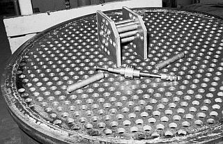 Flue Roller And Flue Test Fixture The proper way to install boiler flues is to insert the flue through the boiler’s two flue sheets and then using a special “rolling expander” to carefully expand the flue tight in the flue sheet holes. This process is started by figuring out just how much the flue needs to be expanded to fit the flue sheet tightly so as not to leak. The roller chosen for this project was manufactured by Elliott Technologies who provide excellent support in how to properly roll a flue. Based on Elliott's recommendations, tubes with a 0.500" OD, 0.402" ID, and 0.049" wall thickness should be expanded to 0.410" ID nominal for the bottom flue sheet. Great care must be exercised not to over-roll the flues as the possibility exists for adjacent tubes to be affected through deformation of the tube sheet holes. The tube expansion amount for the lower flue sheet tubes was taken as the minimal amount of expansion required as the flues would later be welded after rolling and thus leaking would not be an issue. Using a 0.500 x 18 Elliott tube roller, a set of inside diameter micrometers, and the test fixture, accurate measurements of the rolling operation were obtained as the roller was set to provide the necessary amount of tube expansion. Once the settings of the tube roller were obtained using the test fixture, a tube was inserted in the boiler and rolled on the bottom flue sheet only. For the first couple of tubes measurements were taken to insure rolling on the actual boiler occurred as it had on the test fixture. After the first dozen tubes only spot checks were performed while finishing the 636 tubes that had to be inserted and rolled. Readings of a random sample of rolled tubes (on the order of 10% over all parts of the tube sheet) provided expansion measurements between 0.410" ID and 0.412" ID as typical. The unrolled internal diameter (ID) of unexpanded tubes provided measurements of 0.401" ID to 0.403" ID. |