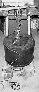 Drying The Interior Boiler Protective Coating During the boiler construction the Chief Mechanic of the Wilmington & Western Railroad, a local tourist railroad operating steam locomotives, mentioned the use of paint inside the boiler to improve heat transmission and reduce the corrosion. An investigation revealed the following information on the Dampney Company’s Apexior® coatings. For more than 80 years, Dampney Company, Inc. has manufactured technically advanced, corrosion-resistant protective coatings for specialized applications in the refining, chemical processing, primary metal, utility, pipeline and gas, and paper industries, as well as military and OEM uses. With more than 80 years of proven service, Apexior® Number 1® and Apexior® Number 3® are still the "old standbys" for resistance to boiling water/steam and waterside corrosion. Apexior® Number 1® (GSA No. 8030-00-282-5424) is specially formulated for the protection of steam generating equipment, condensate return tanks, autoclaves, or other metal surfaces immersed in hot water at temperatures above 200ºF (93ºC). It resists boiling water and superheated steam at temperatures up to 700ºF (371ºC) and provides efficient heat transfer and long service life. Since no Stanley boilers to the best of my knowledge had ever been coated, a sample of the paint was obtained and tested. Boiling water tests proved that there was a definite improvement in thermal conductivity. The paint also stood up to severe heat so it seemed prudent to follow the recommendation provided and use Apexior® Number 1®. A gallon of the coating was obtained, all pipe connections of the boiler plugged and the gallon of coating dumped into the boiler. The boiler was then rolled about vigorously to insure the paint splashed around inside well so as to coat all the flues and interior surfaces of the boiler. As shown in the photo the boiler was suspended and allowed to drain off the excess coating. An air pump was used to push fresh air though the boiler for a week to insure the paint inside the boiler dried thoroughly. |