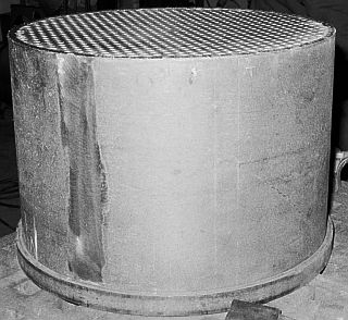 Reinforcing Ring Being Welded To The Boiler Shell At the top and bottom of the boiler a half-inch thick steel band is welded in place. The boiler shell will be wrapped with three layers of high-strength piano wire between the two steel bands. The steel bands serve to protect the layers of piano wire, provide attachment points for the ends of each of the three layers of piano wires, to add strength to the ends of the boiler shell, and to provide a lip to clamp the boiler in the car as well as for the mounting of the smokebox. |