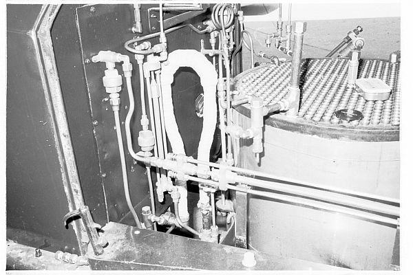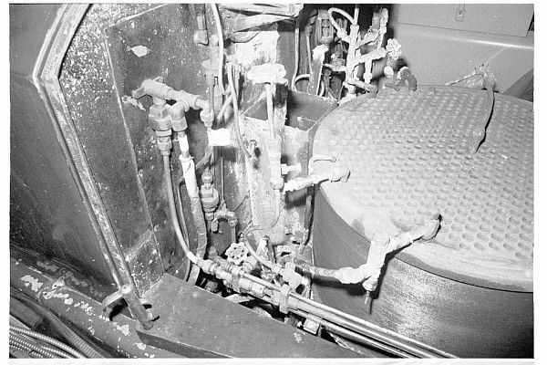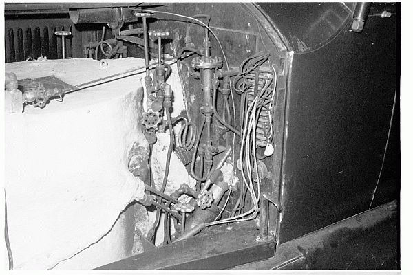 While the boiler had been tested to 1000 PSIG right after manufacture, once installed it was pressurized (called a hydrostatic test) to 800 PSIG to insure the integrity of the piping, etc. The boiler testing was done by filling the boiler full of water and then placing the water under pressure with a hand pump and looking for leaks. Once the fuel, water, and steam piping systems had passed their respective tests they were ready for the initial firing up of the burner. |